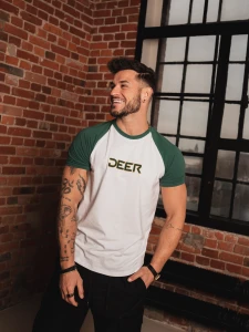 T-shirt męski bawełna z elastanem Deer FluffyDeer – zielono-biały